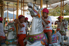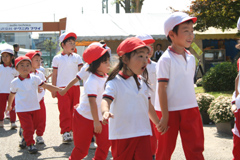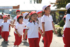 お天気にめぐまれ、今日も、保育園、幼稚園、小学校から
