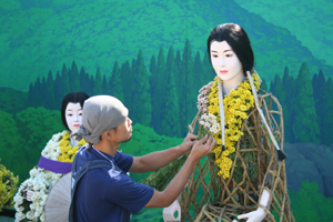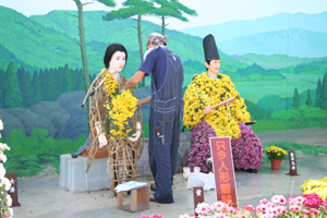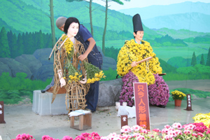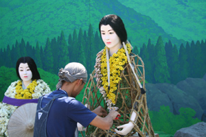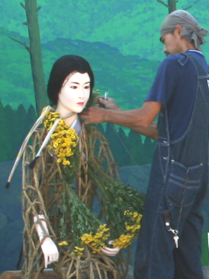 これはめずらしい。菊人形の着せ替えです。紫式部さんの中はこんなふうになっていました。