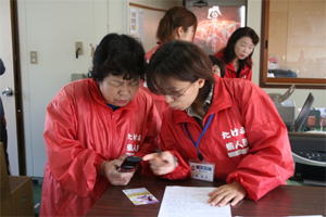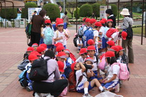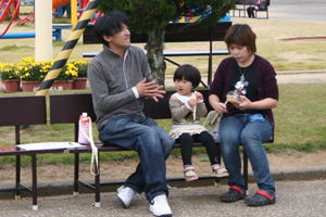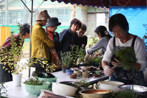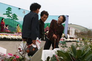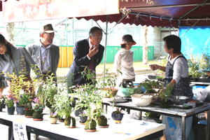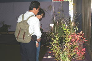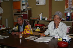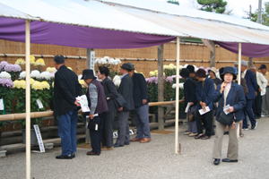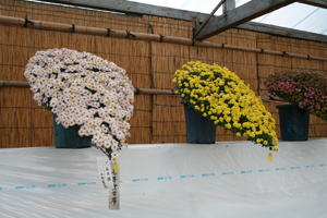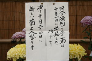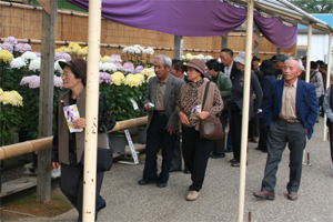 菊花同好会の詰所 左は会長 加藤さん | ||