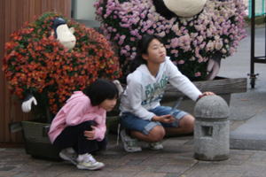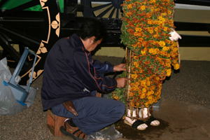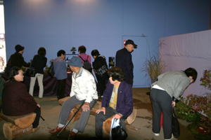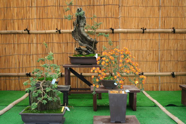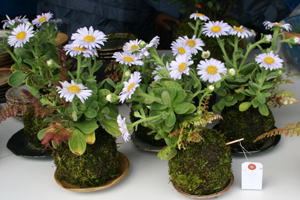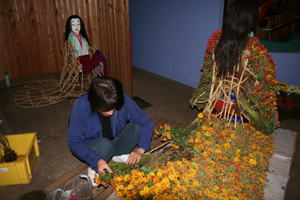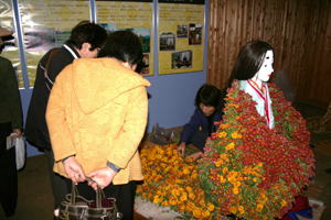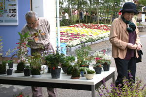 菊人形 着替え中。完成後は武生駅に展示するそうです。 下は紫式部に白式部。山野草です。 | ||