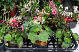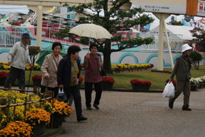 10月27日(月) 朝から冬型のお天気。西高東低。雨模様。少し寒くて、風も時々。 それでも、来ていただける人には来ていただけました。ゆっくり菊、山野草を楽しむにはお天気は関係ないですよね。・・・ |