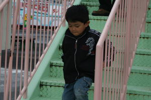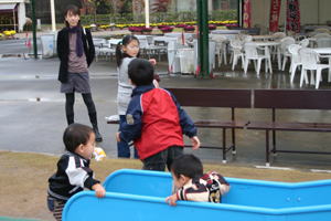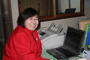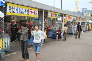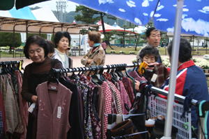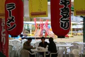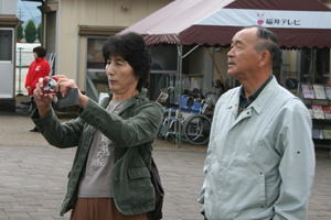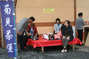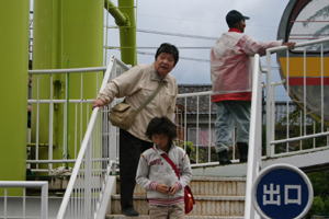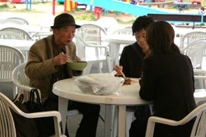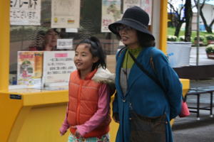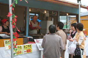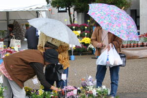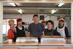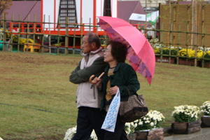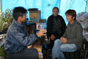 ![]() 雨に気をもむスタッフ(責任者)。でも笑顔。 |