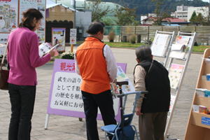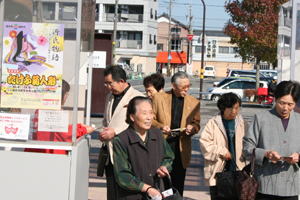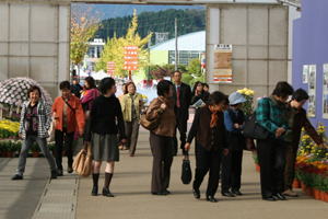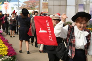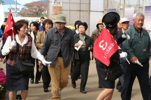 10月30日 予報と違い、朝からいい天気でした。 平日ですが、大入り期待です。 大阪からはとバス2台来ていただきました。 |