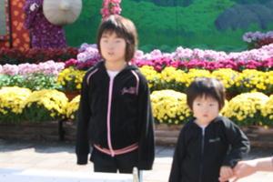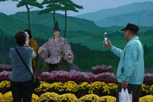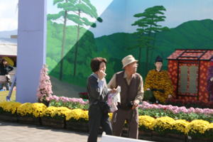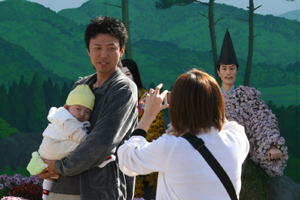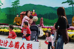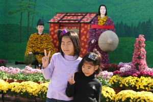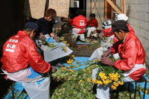 菊人形の菊の準備 | ||