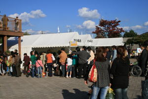 長蛇の列 午後2時30分から 菊のプレゼント | ||