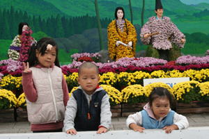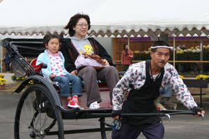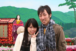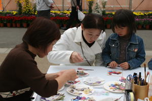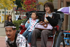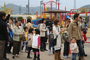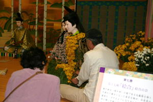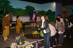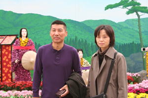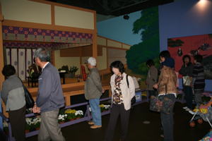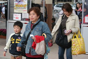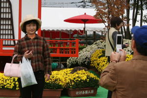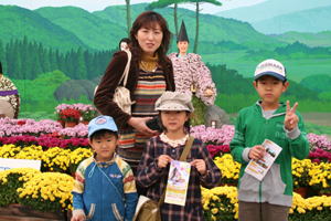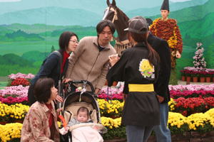 菊人形はここから 今日は雲が多い日でしたが、たくさんのお客様に来ていただきました。 菊花マラソン出場者は割引入場料です。 |