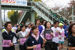 3kの部 先頭は勝負モード 中団以降はリラックスモード | スタート地点に向かう5kの部 | ||
