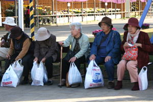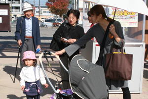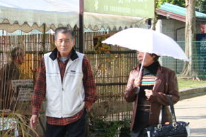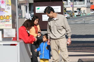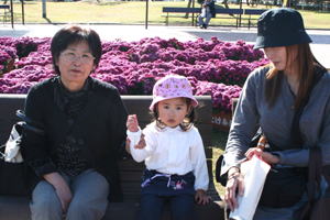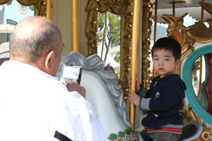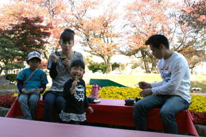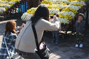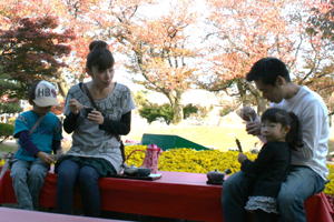 2008年11月5日(水) 今日も快晴の心地よい日でした。 平日は、おじいちゃん、おばあちゃん、お孫さんのグループが多いです。 11時30分〜13時30分頃に撮ったつもりの写真。メモリーカードが装着されておらずに撮れませんでした。ホームページに掲載しますとお約束したご両親が大阪からお越しのお客様の他、いくつかのグループのお客様ごめんなさい。 |