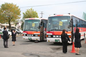 滋賀県からの2グループのお帰りです。 ようこそ またお越しください。 次は東尋坊と芝政へ向かうそうです。 もうひとつのグループは越前海岸へ。 |