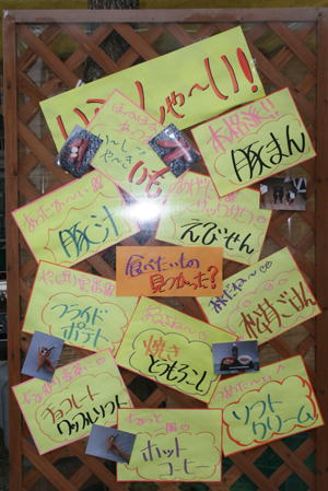 2008年11月8日(土)いよいよ残すは今日と明日の二日間。 服装のように曇り空で冬型の寒い一日。午前中の出足はよくなかったですが、お昼前からは、なんとかお客様も増えてきました。 もっとも遠くからは仙台。遠足も含めて今期4回目というお子さんもいらっしゃいました。 |