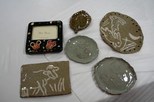 そのころ 第二会場 石石(らく)では・・・ | ろくろ回しと漆器絵付け体験の作品 |