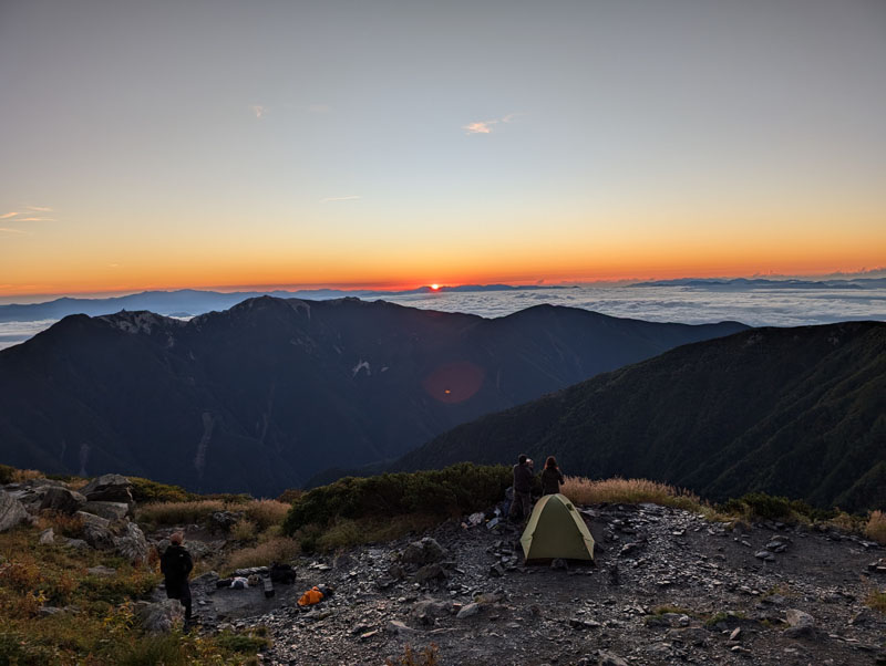 北岳肩の小屋(テント場)から望む日の出