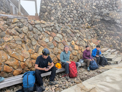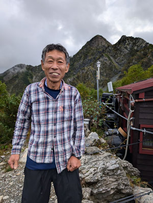 小屋で出会った登山者と |