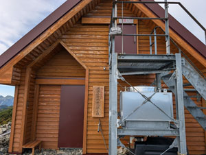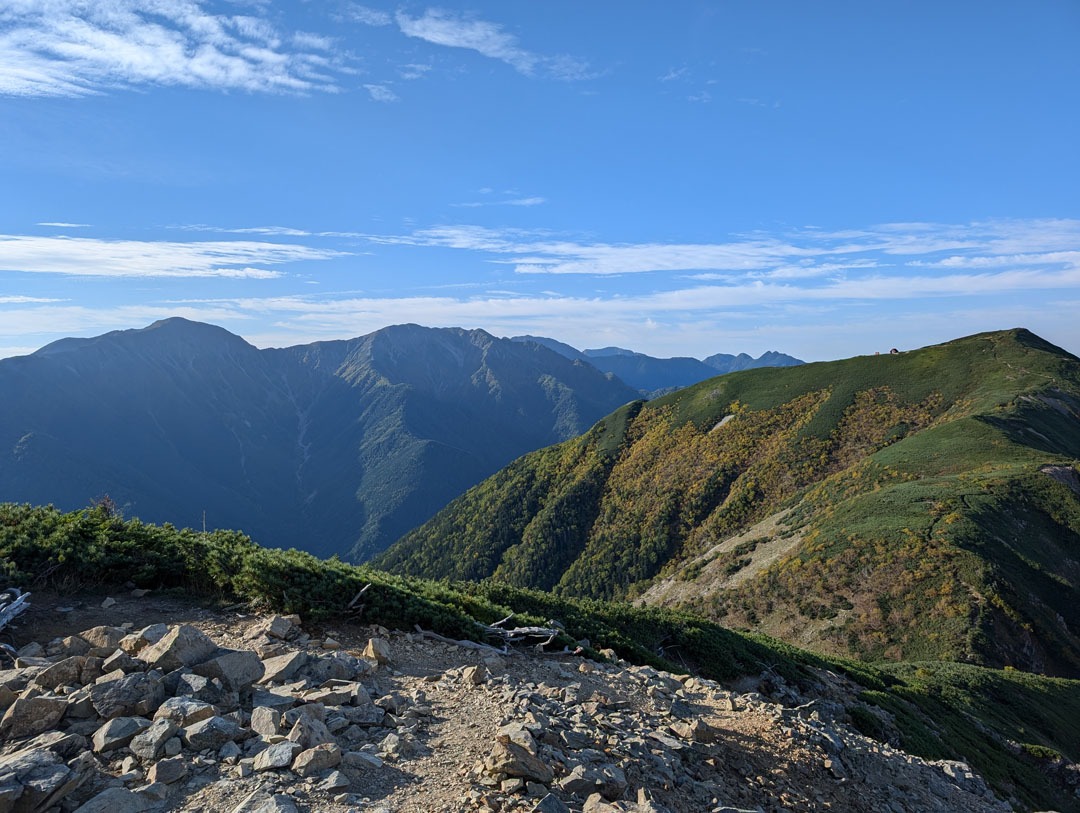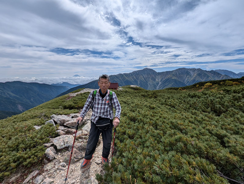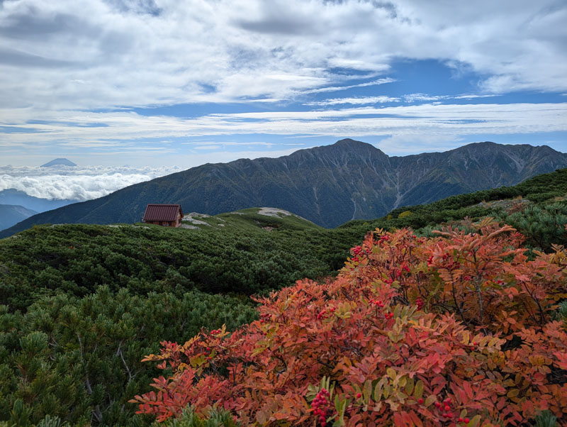 | 小河内岳避難小屋 と 正面 悪沢岳3,141m |