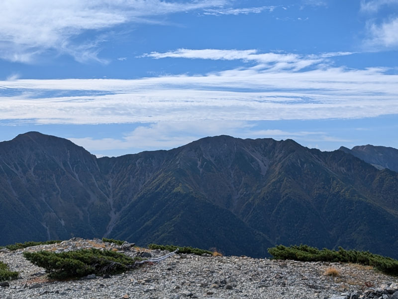 左に仙丈が岳 奥に甲斐駒ヶ岳 正面に北岳