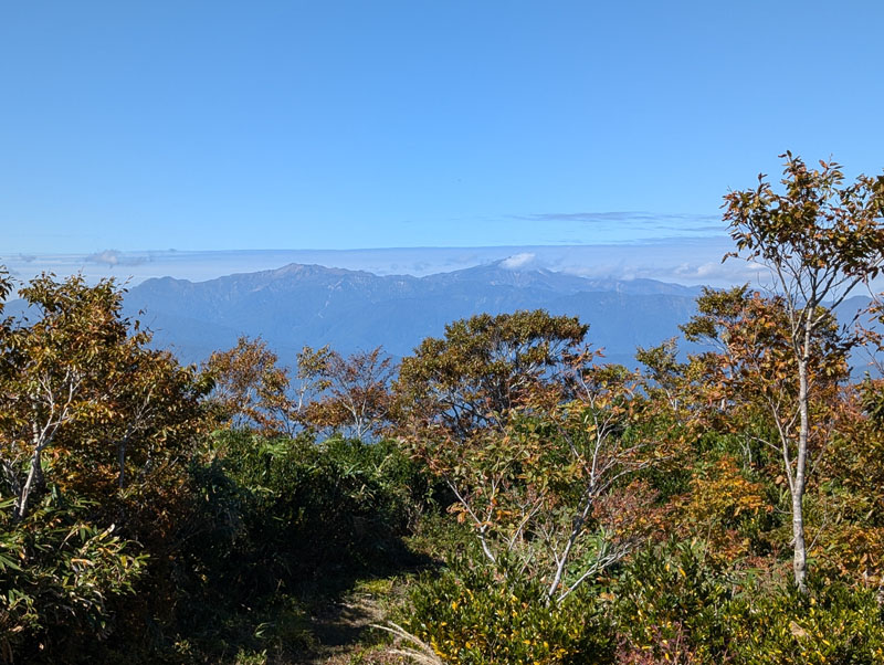 その後ろは 遠くに仙丈が岳、甲斐駒ヶ岳