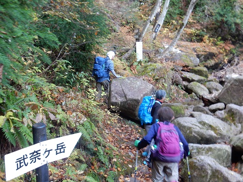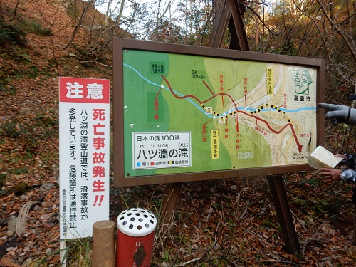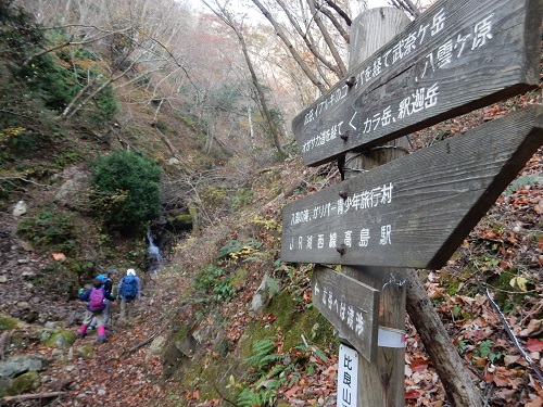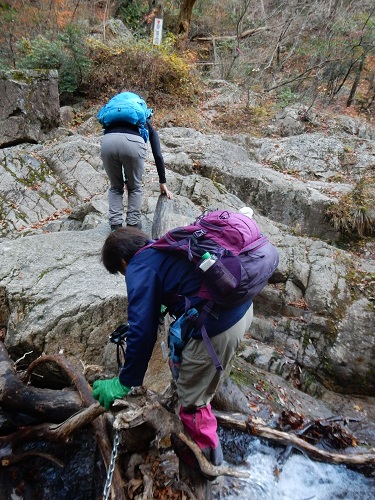 八ッ淵の滝を通っての登山です。