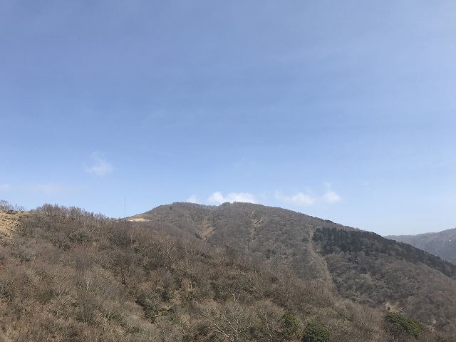 「ろくろ山」へと続くたおやかな芝生の稜線を眺めながらの下山は春の陽気に包まれ心穏やかな気分に成ります。