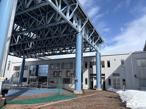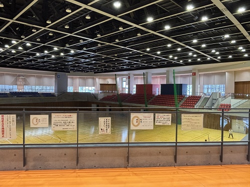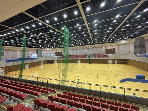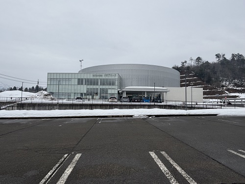 お隣の勝山市の屋内体育施設で未だ、新しくて外観も内部も近代的です。