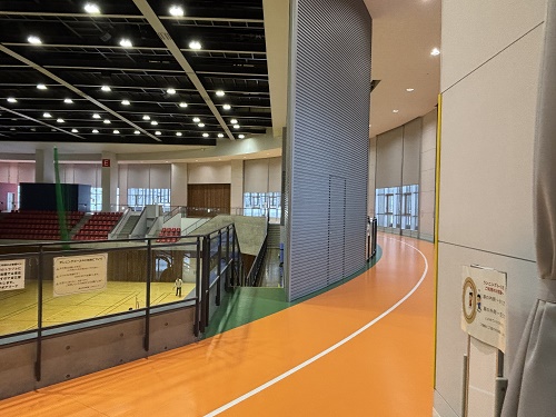 2階観覧席上部の通路がランニング・ウオーキングコースになっています。