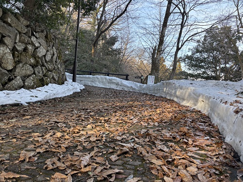 観光客が多い「南口遊歩道」は、二~三日前から除雪が始まり陽当たりの良い道には昨年秋の落ち葉がサクサクと足音がするくらいに乾いています。