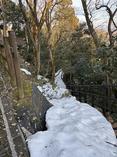 「百閒坂遊歩道」はまだまだ深い積雪で覆われています。