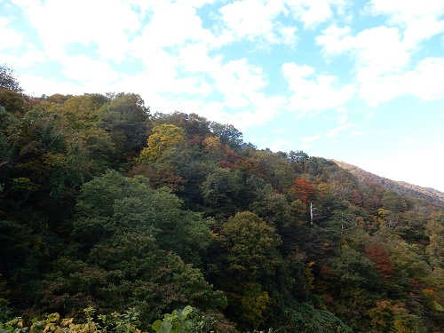 山腹は色付いて来ていますがまだまだ緑が濃いようです。