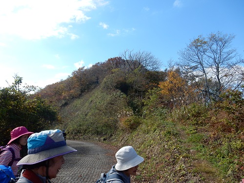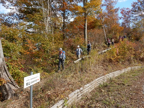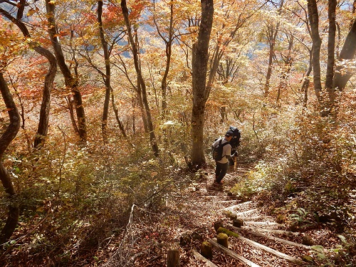 登山道の両脇の木々もこの辺りまで登れば黄色く色付いて来ます。