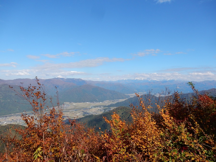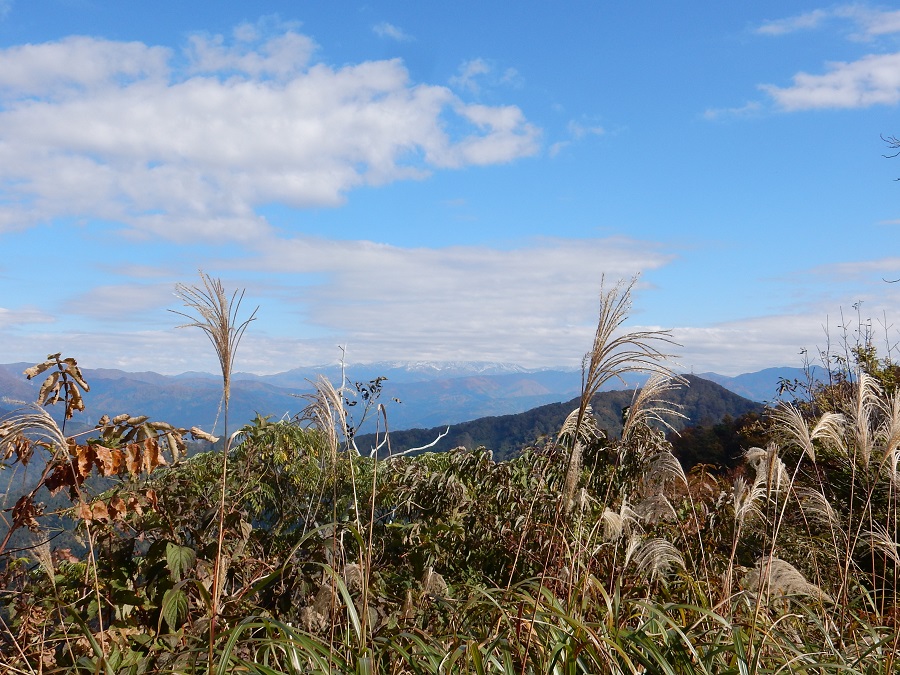 遠くに薄雪化粧の白山の山々がボンヤリと見え、ススキの穂に深まり行く秋の気配が感じ取れます。